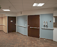 Ältere Menschen brauchen Räume, die auf ihre Wünsche und Bedürfnisse abgestimmt sind. Dazu ist eine psychologisch ausgerichtete Farbgestaltung besonders hilfreich. Der schnelle Weg von hellem Tageslicht im Freien zu einem unzureichend beleuchteten Innenraum kann sogar zum kurzfristigen Ausfall des Sehens führen. Daher brauchen vor allem die Eingangsbereiche der Häuser eine gute Ergänzungsbeleuchtung mit hohen Lichtstärken. Fensteröffnungen und Oberlichter müssen dagegen mit einem wirksamen Blendschutz versehen werden, damit das an das Beleuchtungsniveau der Innenräume angepasste Auge nicht überstrahlt wird. Bei alten Menschen stellen sich meist auch Linsentrübungen ein, die zu einer verstärkten Lichtstreuung im Auge führen, was die Blendung ebenfalls erhöht und die Sehschärfe reduziert. In Senioreneinrichtungen sollte man daher von vorneherein auf glänzenden Oberflächen verzichten.