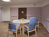 Aus diesem Grund sollten die Sanierungsarbeiten rasch beginnen, auch wenn dafür noch kein Konzept erarbeitet war! Das Vertrauen des Einrichtungsleiters ermöglichte eine ad-hoc-Planung. Mit Farbkollektionen »bewaffnet« haben wir uns in die Räume gesetzt, die Bewohner, die Pflegenden und die Gäste beobachtet und dabei ein Konzept entwickelt.