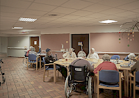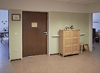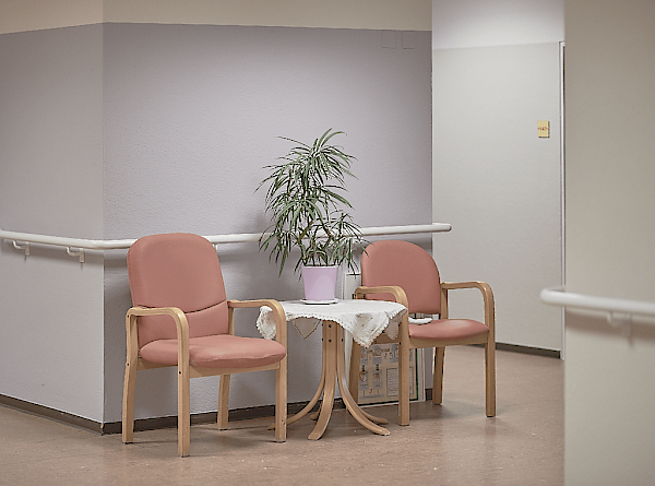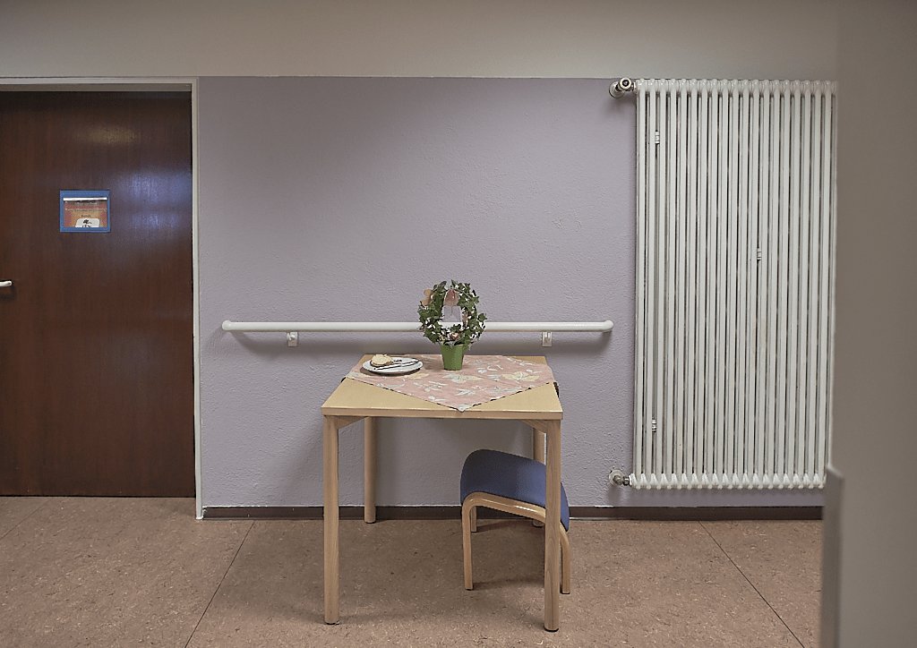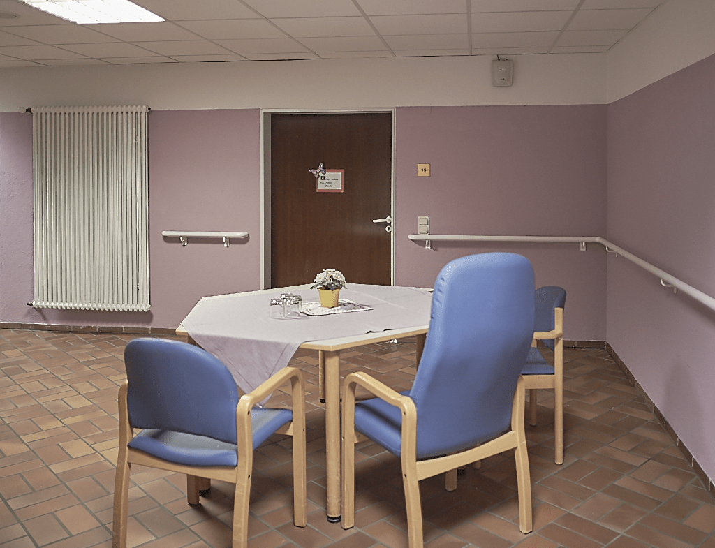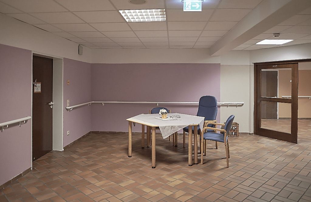 Aus diesem Grund sollten die Sanierungsarbeiten rasch beginnen, auch wenn dafür noch kein Konzept erarbeitet war! Das Vertrauen des Einrichtungsleiters ermöglichte eine ad-hoc-Planung. Mit Farbkollektionen »bewaffnet« haben wir uns in die Räume gesetzt, die Bewohner, die Pflegenden und die Gäste beobachtet und dabei ein Konzept entwickelt.